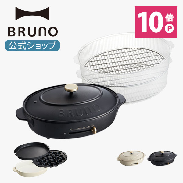 【公式】 BRUNO ブルーノ オーバルホットプレート プレート2種 (たこ焼き 平面 深鍋) スチーマー セット 電気式 ヒーター式 1200W 最大250℃ おしゃれ かわいい 蓋 ふた付き 温度調節 大人数 洗いやすい ブラック Black 黒 一台 洗いやすい 1人 2人 小型 BOE053