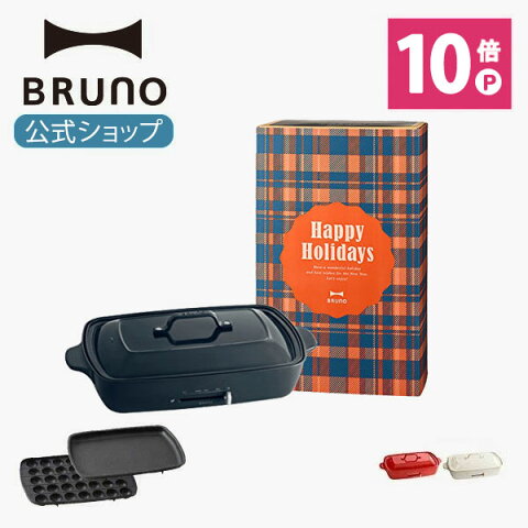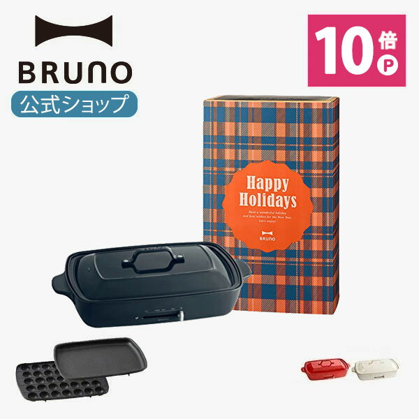 ホットプレートグランデサイズ+ホリデー限定スリーブのギフト! 大人気のBRUNO ホットプレートグランデサイズを"Happy Holidays"のメッセージが入ったスリーブでラッピングしたギフトです。